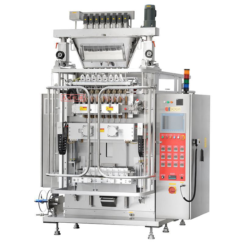 La envasadora vertical automática de tiras de sellado trasero de varios carriles DC-890 es la opción perfecta para alimentos, productos médicos y productos químicos domésticos de uso cotidiano que requieren envases en tiras para líquidos, polvos y partículas. Ofrecemos máquinas de 6, 8 y 10 carriles, adaptadas para satisfacer los requisitos del cliente en términos de tamaño de bolsa y producción. Los controles simples hacen que esta máquina envasadora sea muy fácil de operar: ingrese los valores deseados en el sistema para ajustar la longitud de la bolsa, el tiempo de producción y guardar parámetros específicos para la máxima comodidad. Con características como la capacidad de producción a gran escala, la producción de alta velocidad y el embalaje de sello trasero, es fácil ver por qué la envasadora vertical DC-890 se ha convertido en la mejor opción para la satisfacción del cliente.